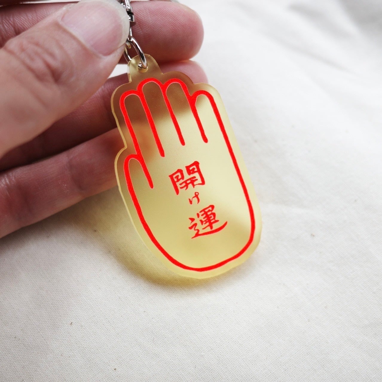 コロンとした手のフォルムがかわいい、いいことあるかも!なキーホルダー。