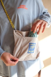 フロントのポケットに缶ビールがすっぽり入るサコッシュ。