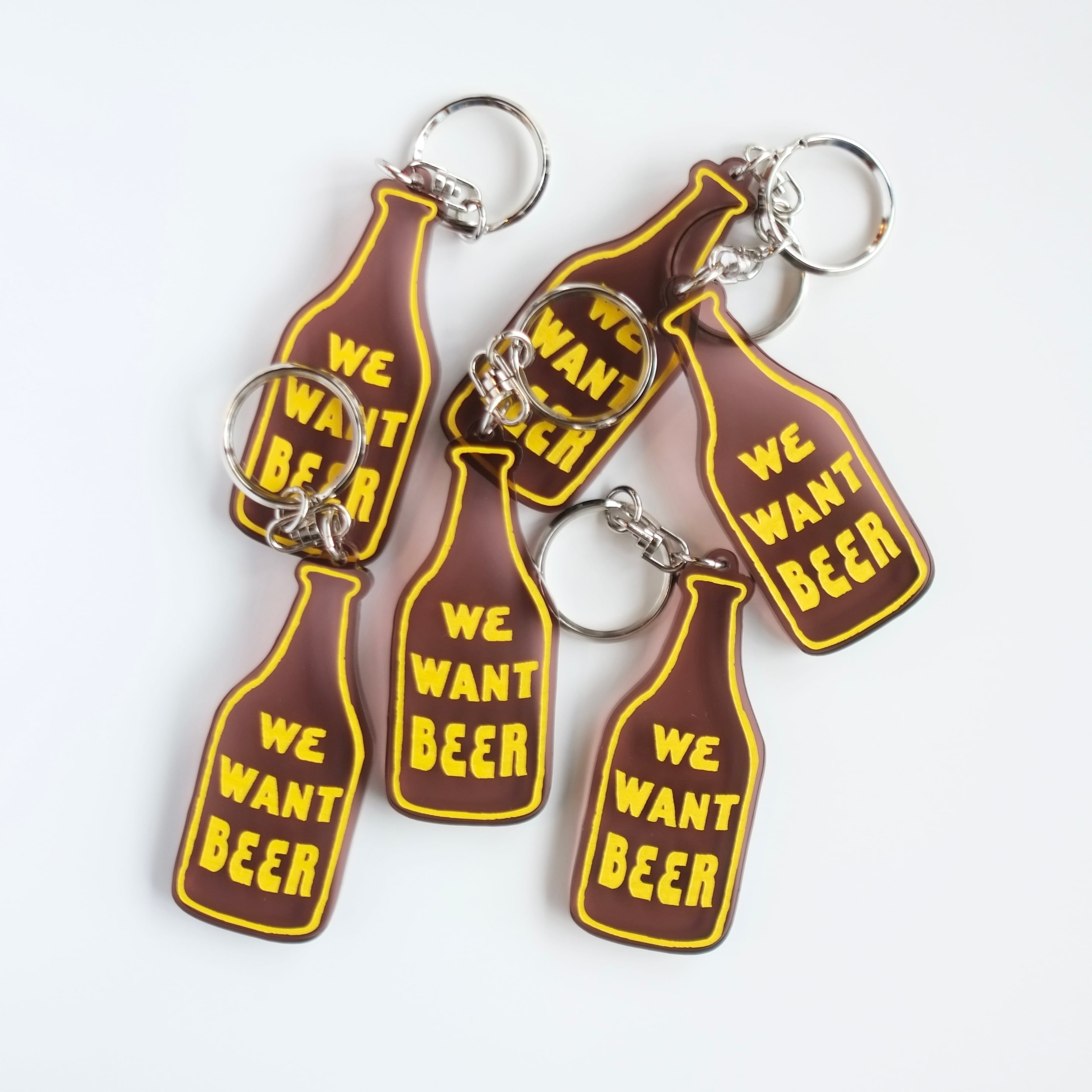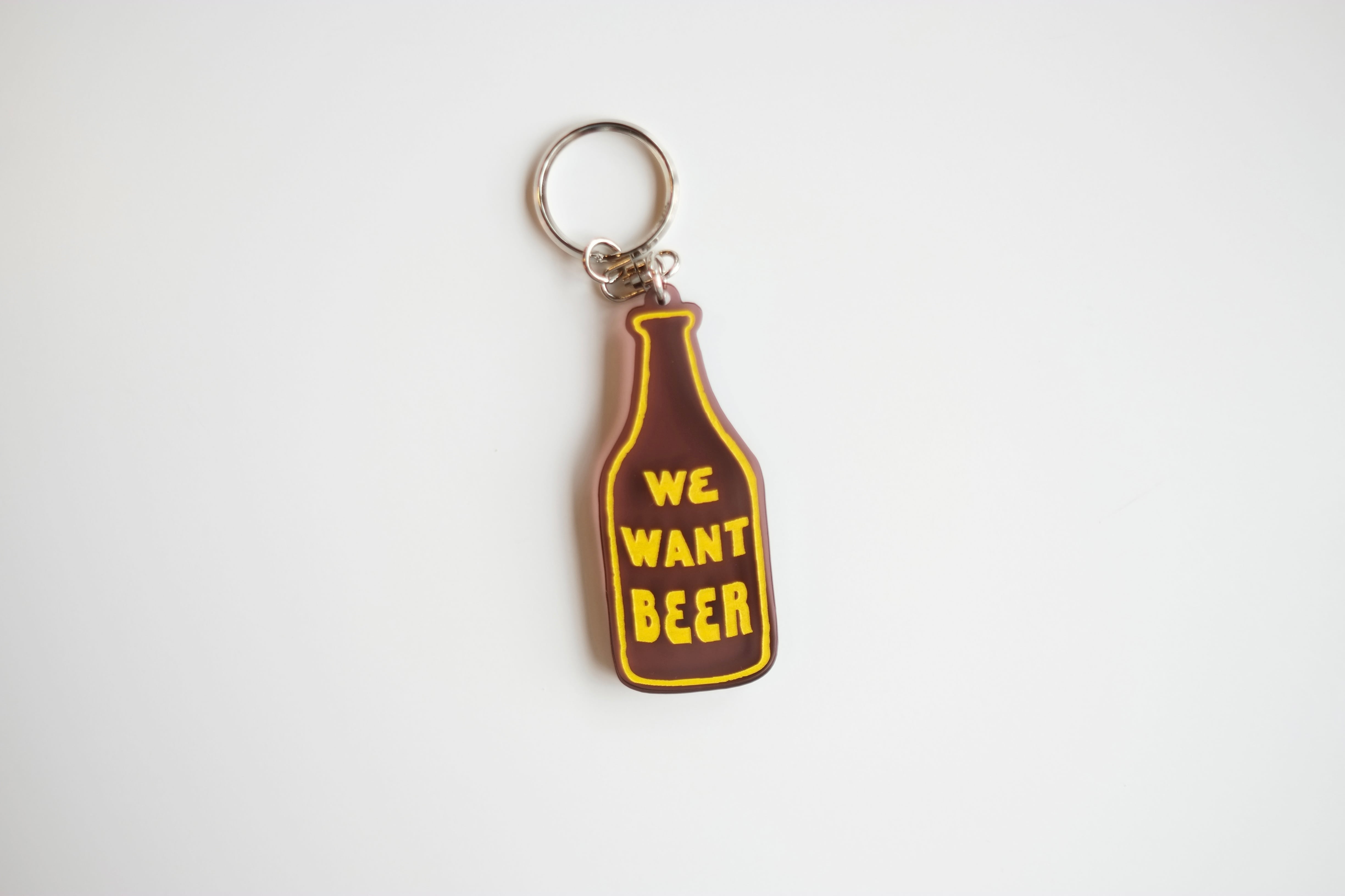 瓶ビール型が可愛いクリアブラウンのキーホルダー。